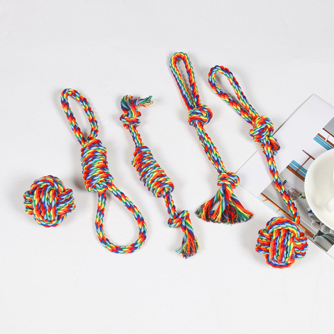 ペット犬ロープおもちゃセットチューバイト耐性レインボーカラー